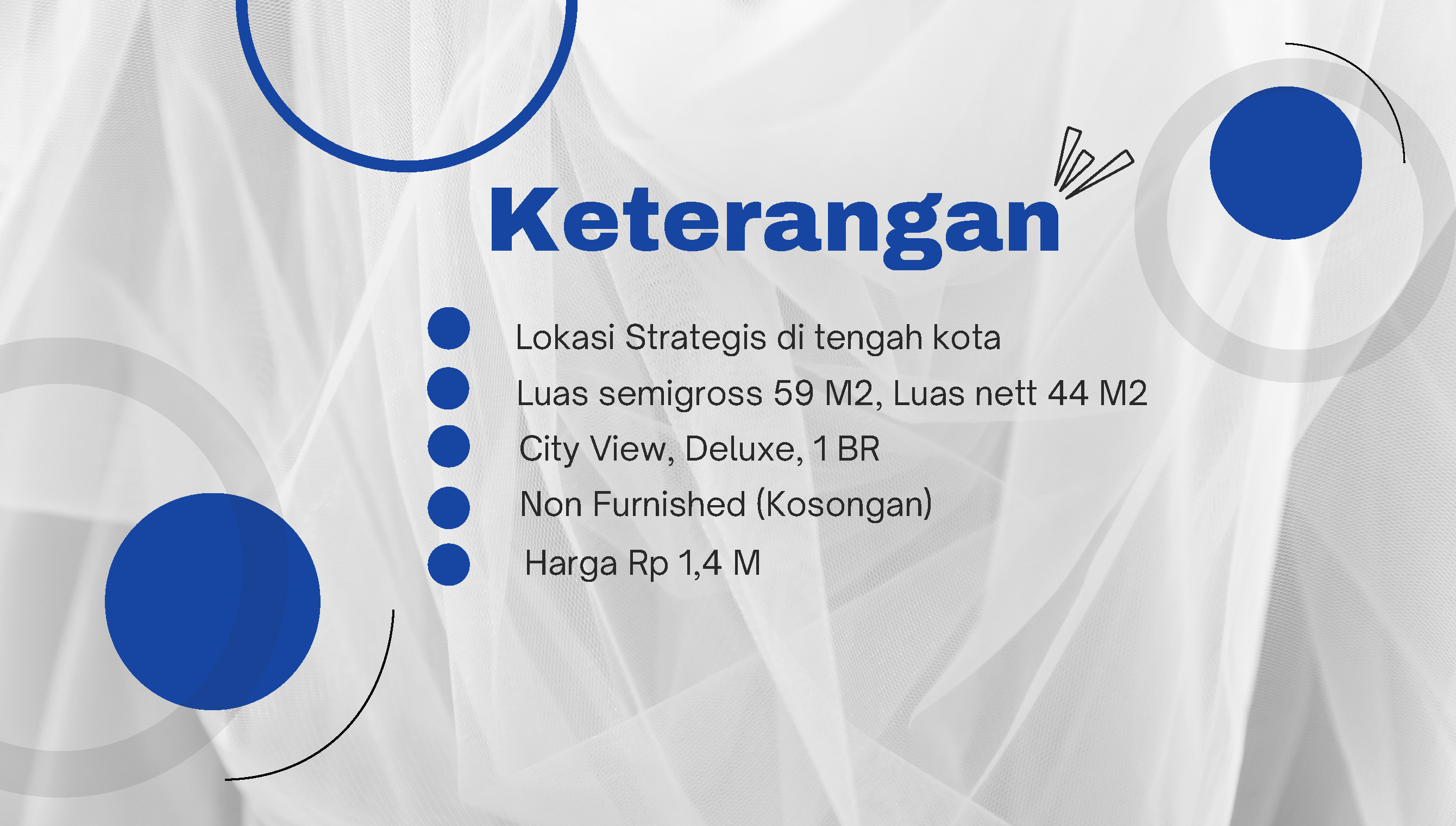 - Luas Gross 59m2, Luas Nett 44m2