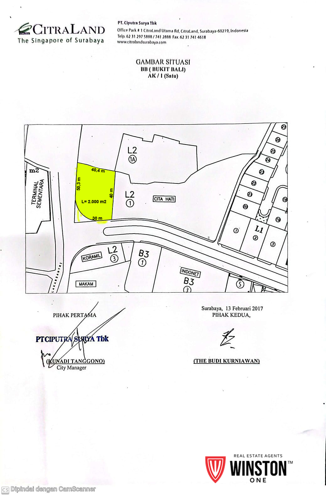 Info Tambahanlahan kosong 2000m2(P40mXL50m) di Bukit Bali Citraland komersial Area. Sebelah sekolah Internasional CITAHATI. Hok menghadap JLLB. Outer West Ring Road. Dekat club house Citraland.
