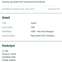 / Tanah Di Bukit Golf Internasional Citraland Surabaya Barat