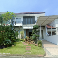 Full Furnished kecuali eletronik (kulkas, Dispenser, dll) Carport 1 mobil AC tiap kamar + cctv + Kolam Ikan.