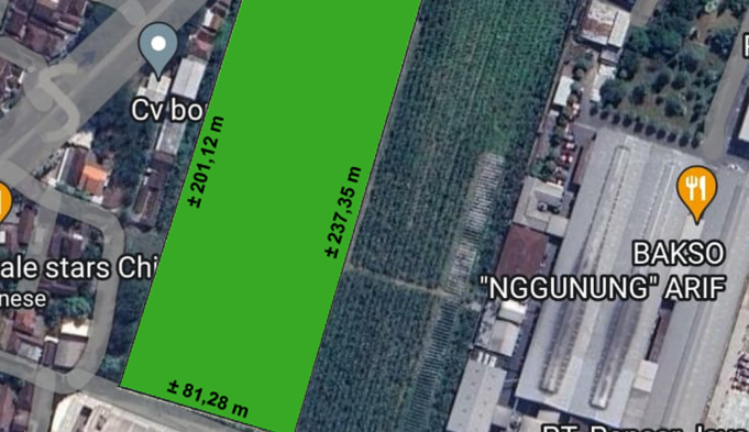 - Lebar Akses Masuk (0 Jalan) 48meter, kemudian Bentuk Tanah Melebar dan Kotak dengan Dimensi +/- 220 X 82 (Lihat Gambar Bentuk Tanah)