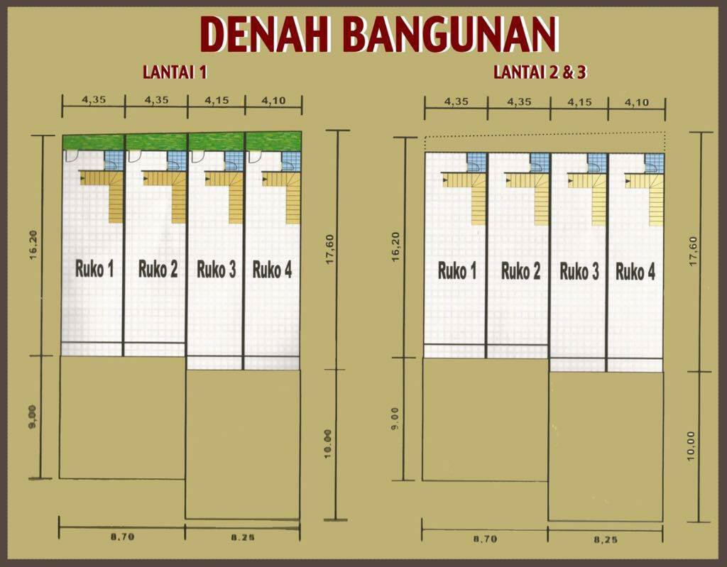 LB 1026m2 (4.5×19× 3lantai × 4Ruko)