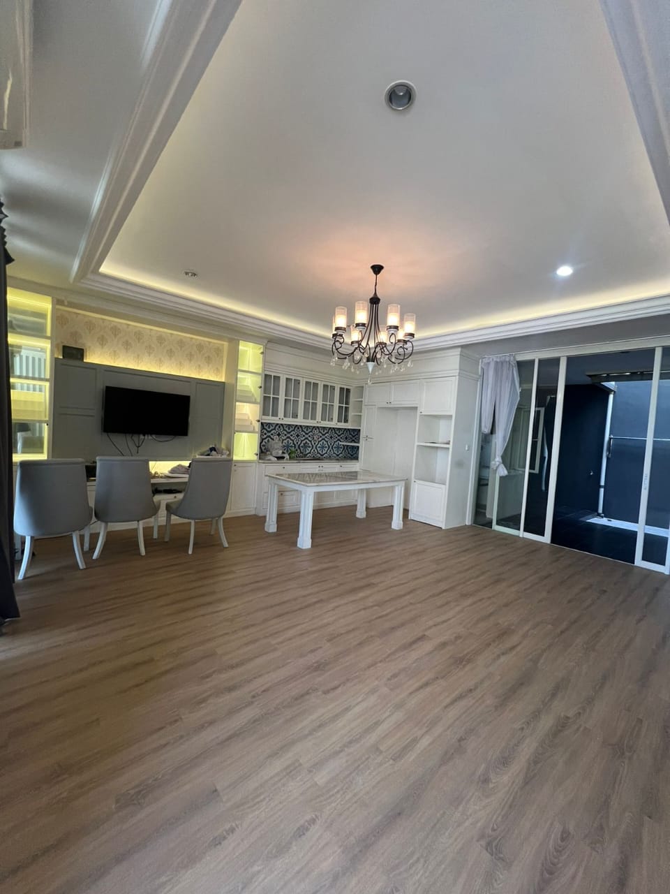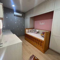 Furnished (lantai vinyl,WH,AC,wardrobe,kitchen set,dining table)